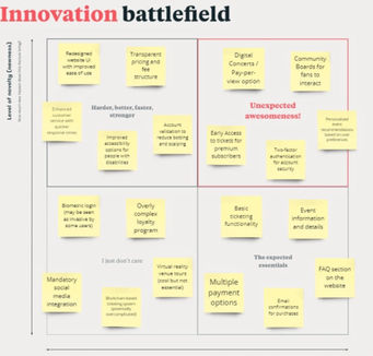Innovation Battlefield: A structured ideation exercise designed to simulate competition between opposing ideas to encourage critical thinking and identify the most effective solutions.